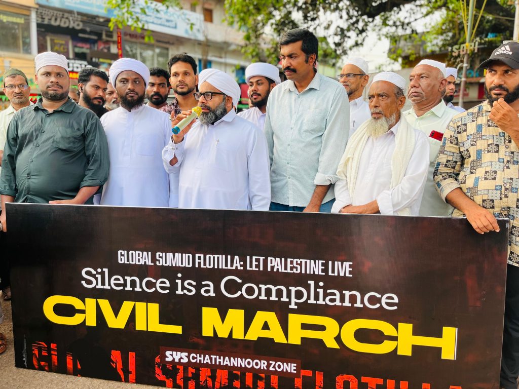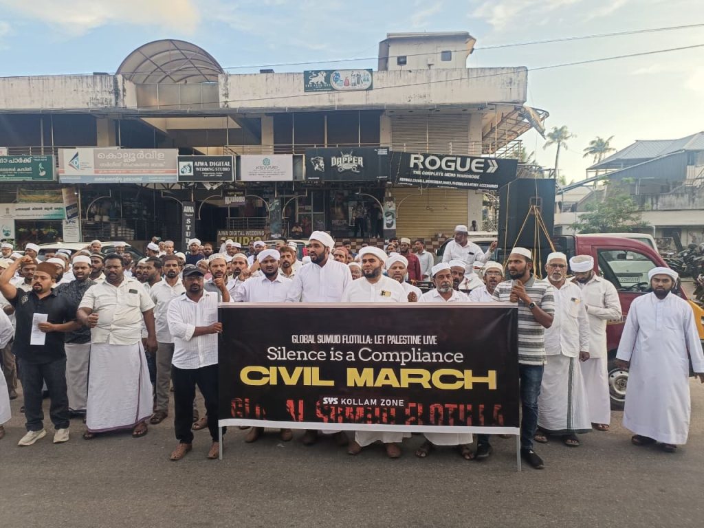 കൊല്ലം : പാലസ്തീൻ ജനതക്ക് ഐക്യദാർഢ്യം പ്രഖ്യാപിച്ചു കൊണ്ട് കൊല്ലം, ചാത്തന്നൂർ സോണിൽ ഐക്യദാർഢ്യ റാലി സംഘടിപ്പിച്ചു. ഗ്ലോബൽ സുമൂദ് ഫ്ളോട്ടില്ലായുടെ ഭക്ഷണക്കപ്പൽ തടഞ്ഞ ഇസ്രായേലിൻ്റെ അതിക്രൂരതയോട് പ്രതിഷേധം രേഖപ്പെടുത്തിയാണ് റാലി നടന്നത്. കണ്ണനല്ലൂർ വടക്കേ മുക്കിൽ നിന്ന് ആരംഭിച്ച റാലി കണ്ണനല്ലൂരിൽ സമാപിച്ചു. കേരള മുസ്ലിം ജമാഅത്ത് ജില്ലാ ജനറൽ സെക്രട്ടറി ഡോ മുഹമ്മദ് കുഞ്ഞ് സഖാഫി മുഖ്യപ്രഭാഷണം നടത്തി.സ്റ്റേറ്റ് എക്സിക്യൂട്ടീവ് അംഗം അഹമ്മദ് സഖാഫി, എസ് വൈ എസ് ചാത്തന്നൂർ സോൺ ജനറൽ സെക്രട്ടറി നവാസ് ജൗഹരി എന്നിവർ പ്രഭാഷണം നടത്തി. റിയാസ് സഖാഫി സ്വാഗതവും ഷെഫീക്ക് മുട്ടയ്ക്കാവ് നന്ദിയും പറഞ്ഞു.